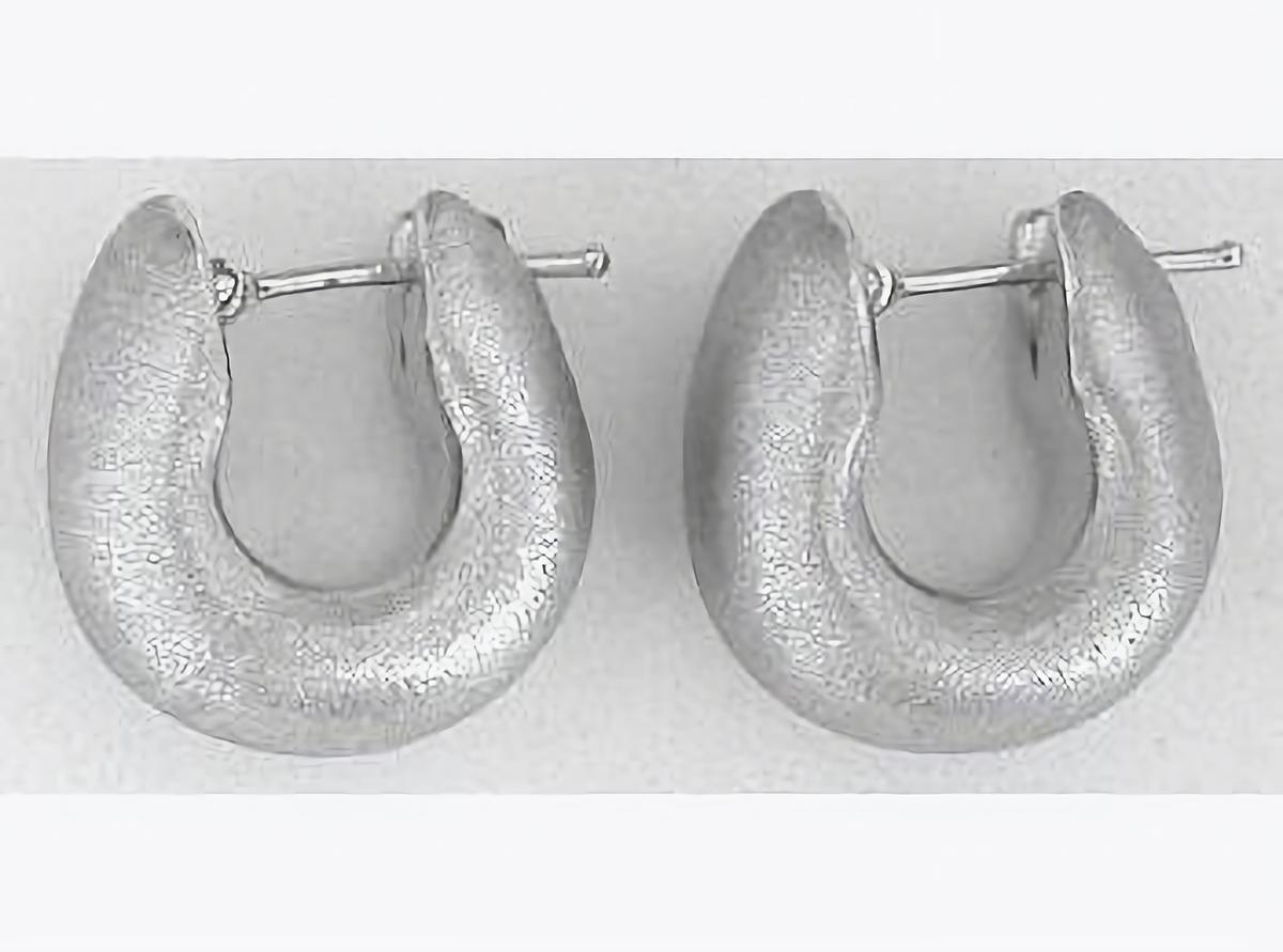 Special Features: Beautiful chubby satin finished hoops that hug the ear perfectly. Slight drop post and they look just great on the ear!