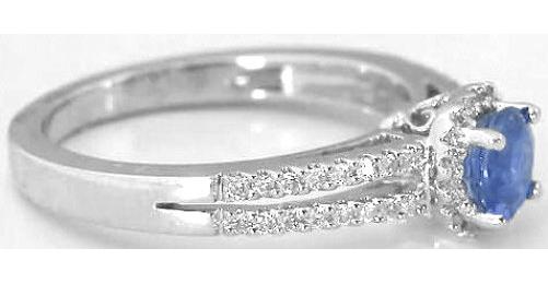 Sapphire Ring - Round - 0.95 ctw Sapphire and Diamond Ring - 14k white gold