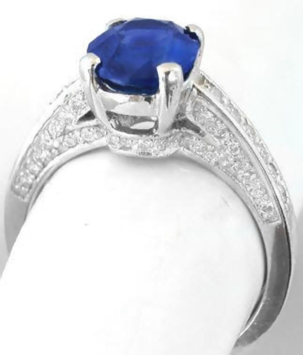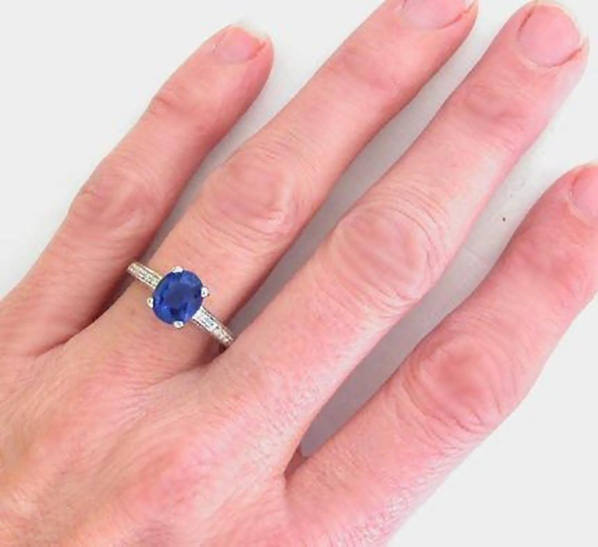 combination of an intense cornflower and royal blue. The sapphire is transparent and well