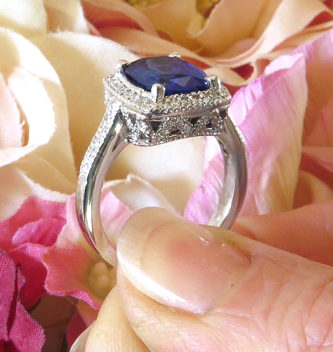 Large Ceylon Natural Blue Sapphire and Diamond Engagement Ring in 18k white gold for sale   Fine Quality Ceylon Sapphire and Diamond Engagement Ring in 18k white gold