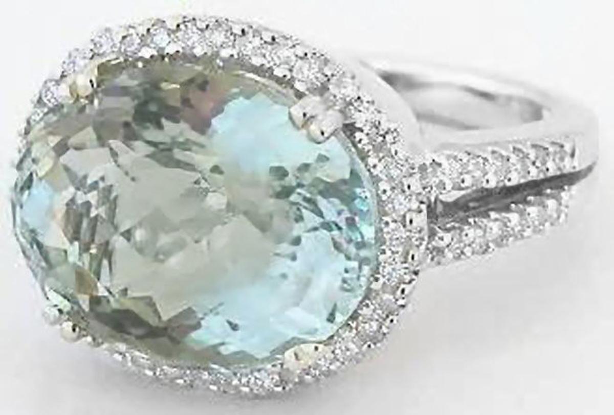 9.35 ctw East West Set Prasiolite and Diamond Ring in 14k white gold