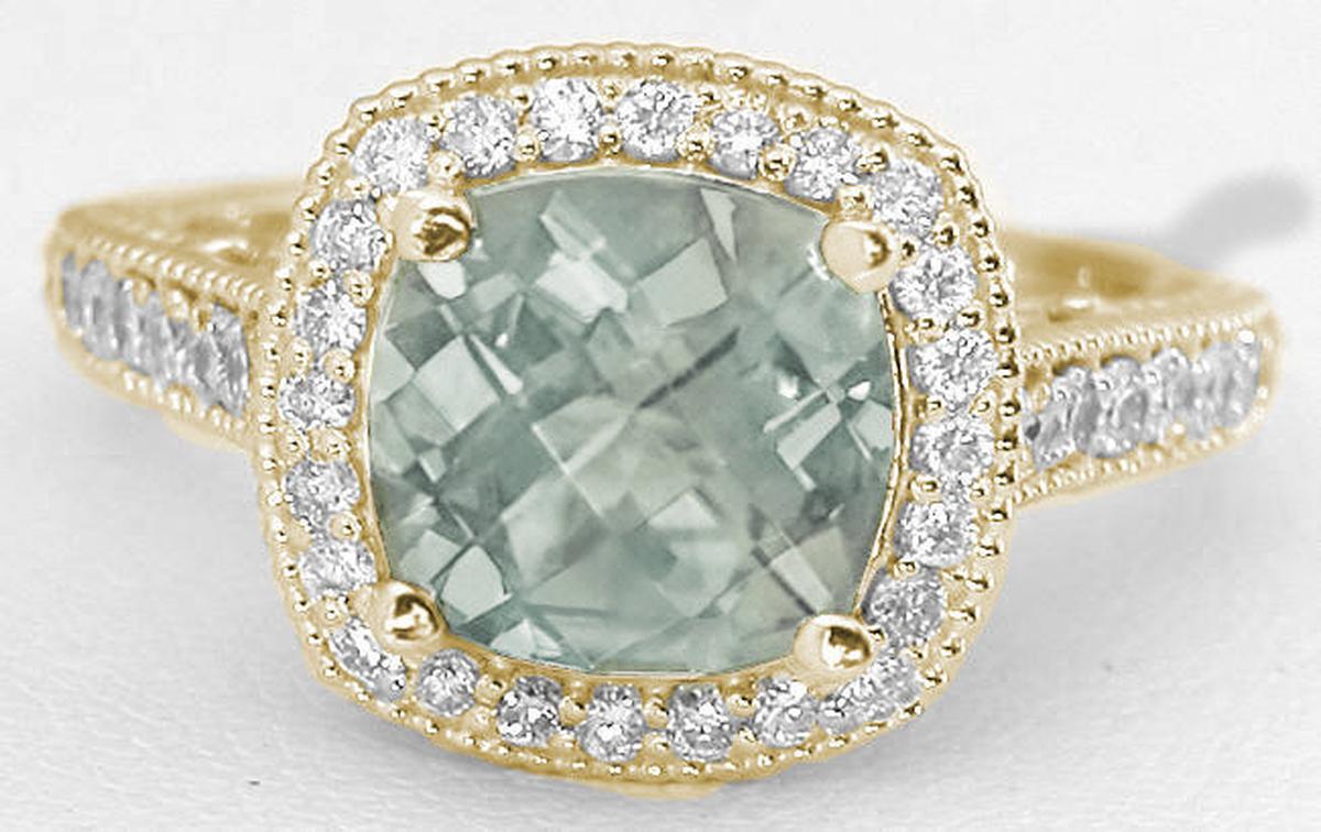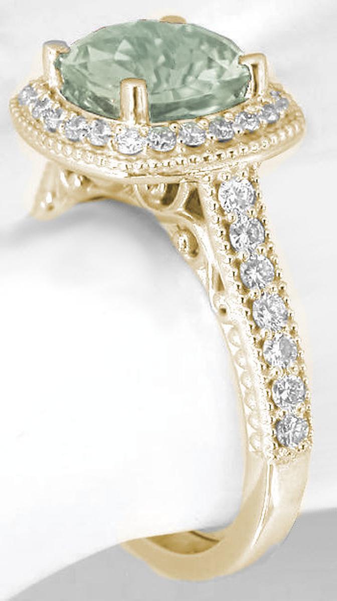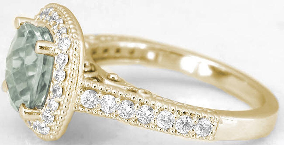 Prasiolite Diamond Halo Ring in 14k Gold in 14k yellow gold   Prasiolite Diamond Halo Ring in 14k Gold in 14k yellow gold