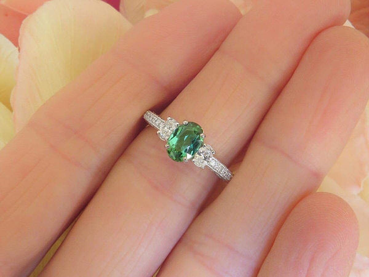 Seafoam Green Tourmaline and Oval Diamond Rings
