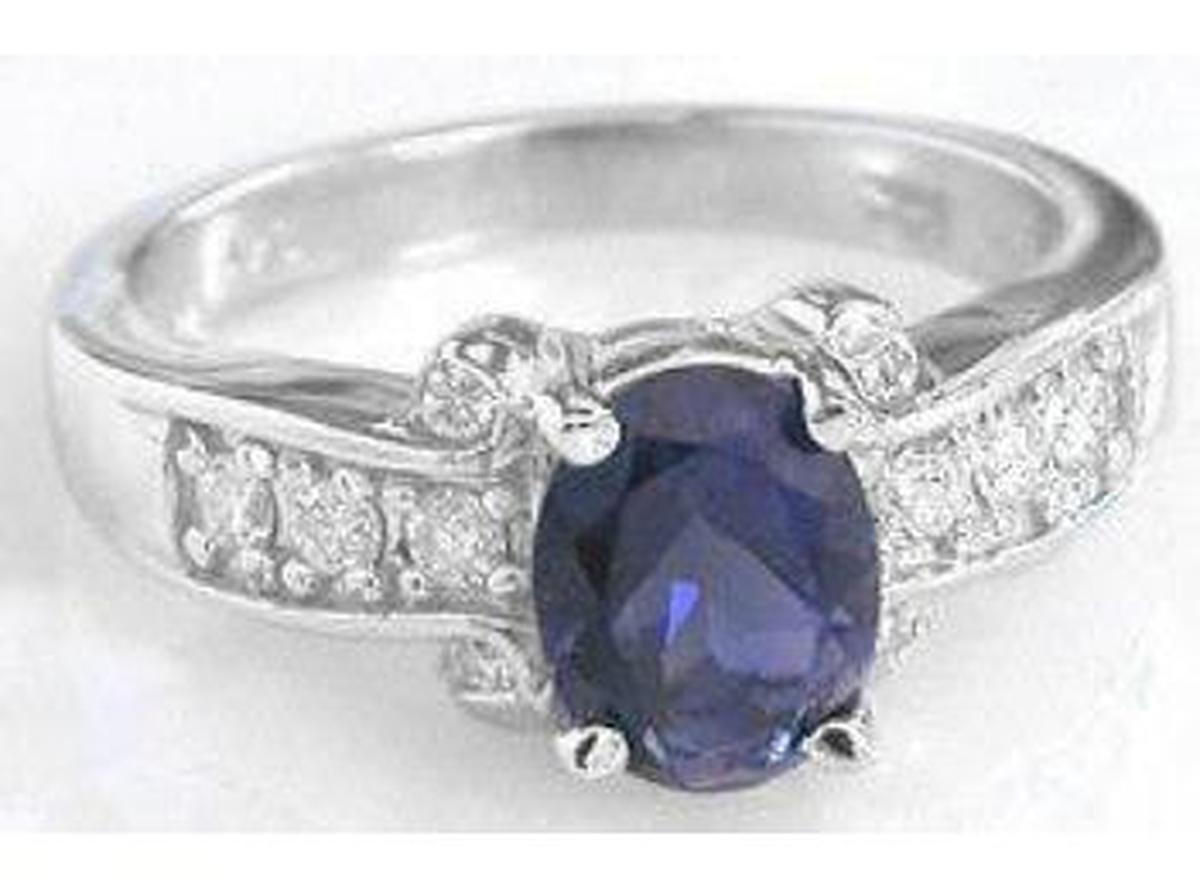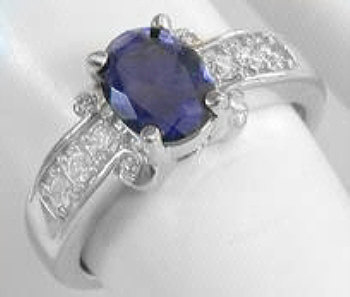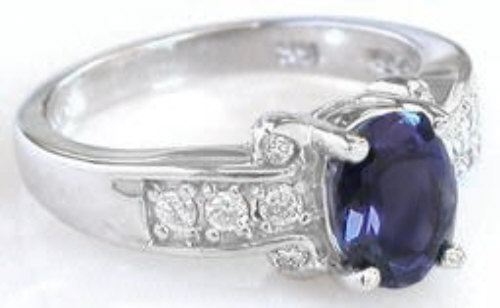 Special Features: This beautiful white gold ring features a lovely blue-purple iolite that is both well cut and eye clean. The setting has nearly 1/3 carat of fine, white, eye clean diamonds which add a tasteful dash of sparkle and shine to the ring. At 5 grams, the setting is well made and will easily stand up to frequent or daily wear.  Once you see the ring in person and put it on your finger, you will immediately know what a high quality piece this is.