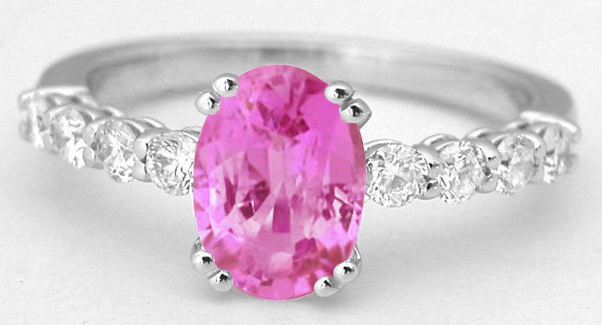 Gemstone: Natural Pink Sapphire Fine Quality Pink Sapphire Rings in 14k white gold