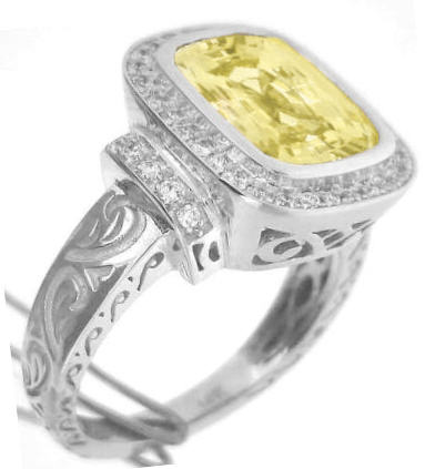 only here, this magnificent, one of a kind yellow sapphire ring is simply outstanding. Everything about the