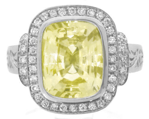 lemony-banana color, without the golden or grayish tones that diminish the beauty and value of the stone. This is