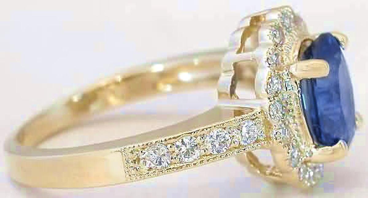 Stunning 2.94 ctw Unheated Blue Sapphire and Diamond Ring in 14k yellow gold