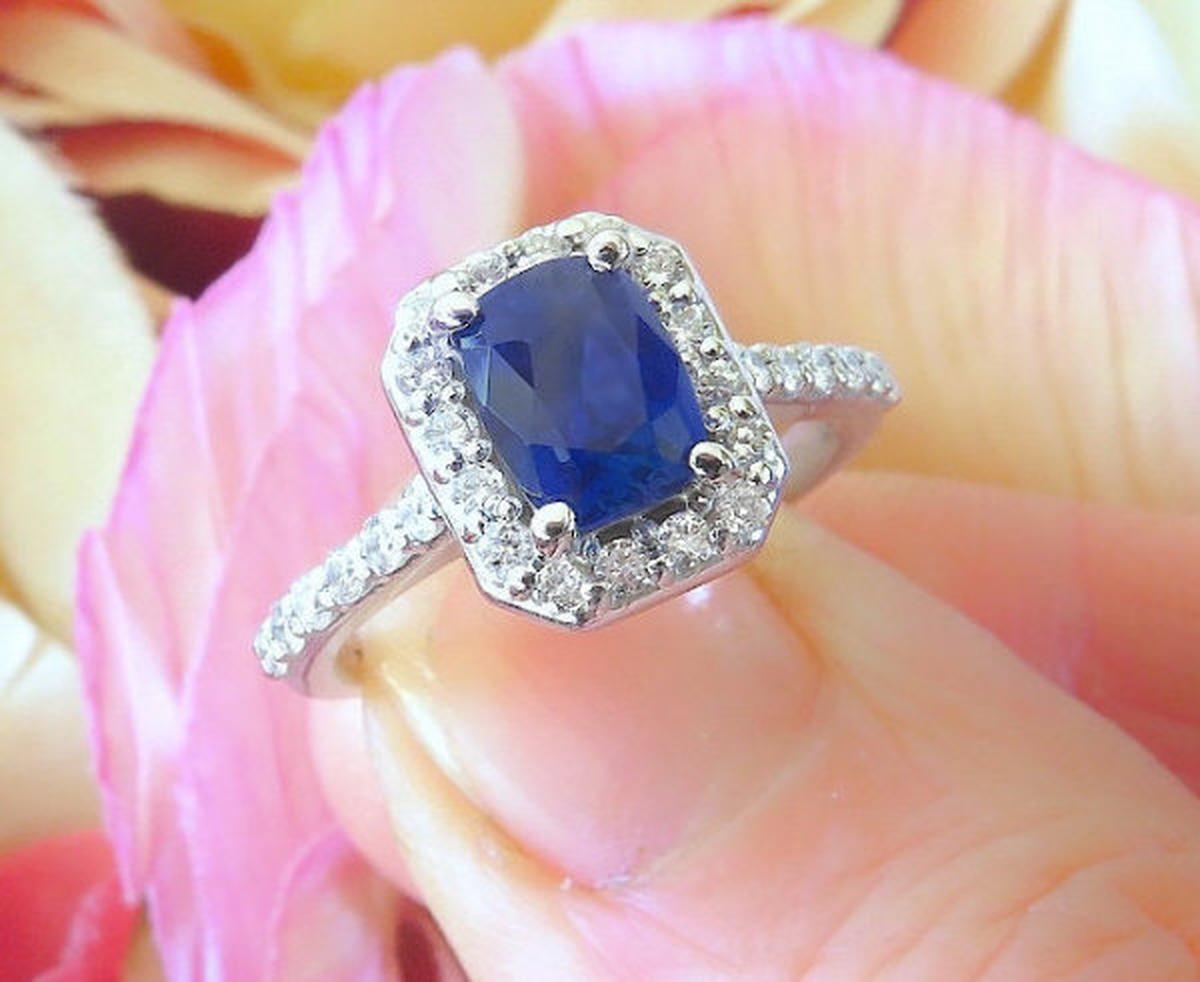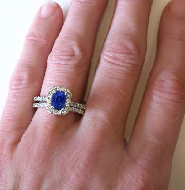 engagement set. The sapphire is a very nice and wearable size at 1.64 carats and it has a beautiful cut.