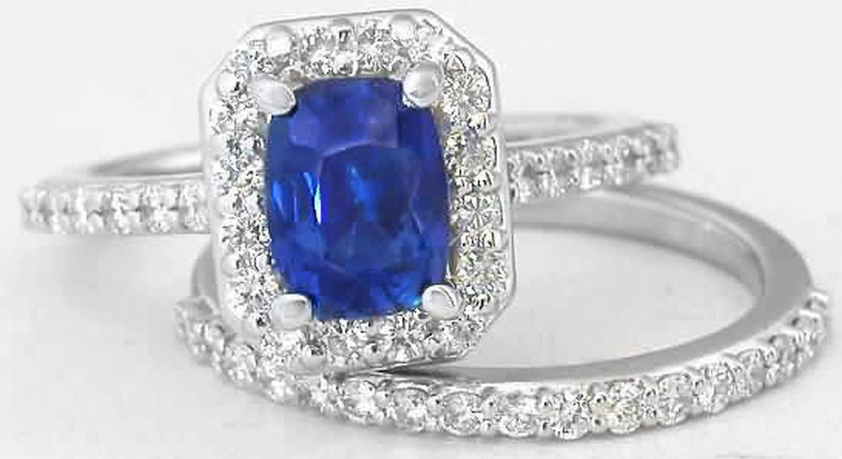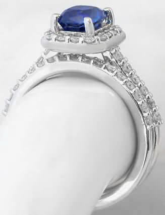 single row of diamonds and the matching band will sit flush and perfectly against the sapphire ring. If you are