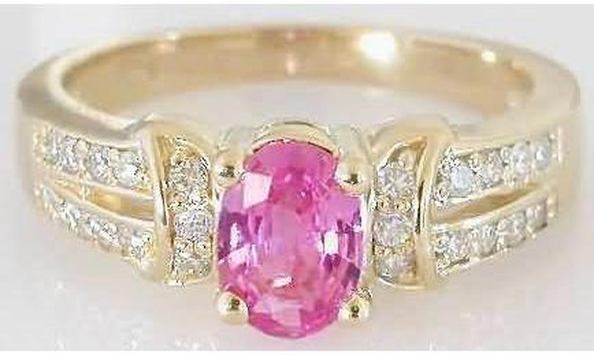 Gemstone: Natural Pink Sapphire Oval Cut Genuine Pink Sapphire Ring with Real Diamonds in solid 14k yellow gold for sale