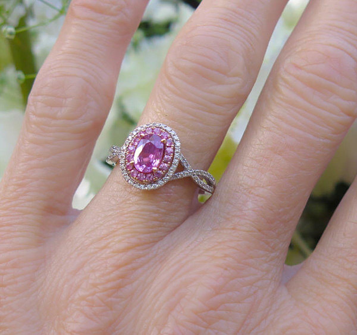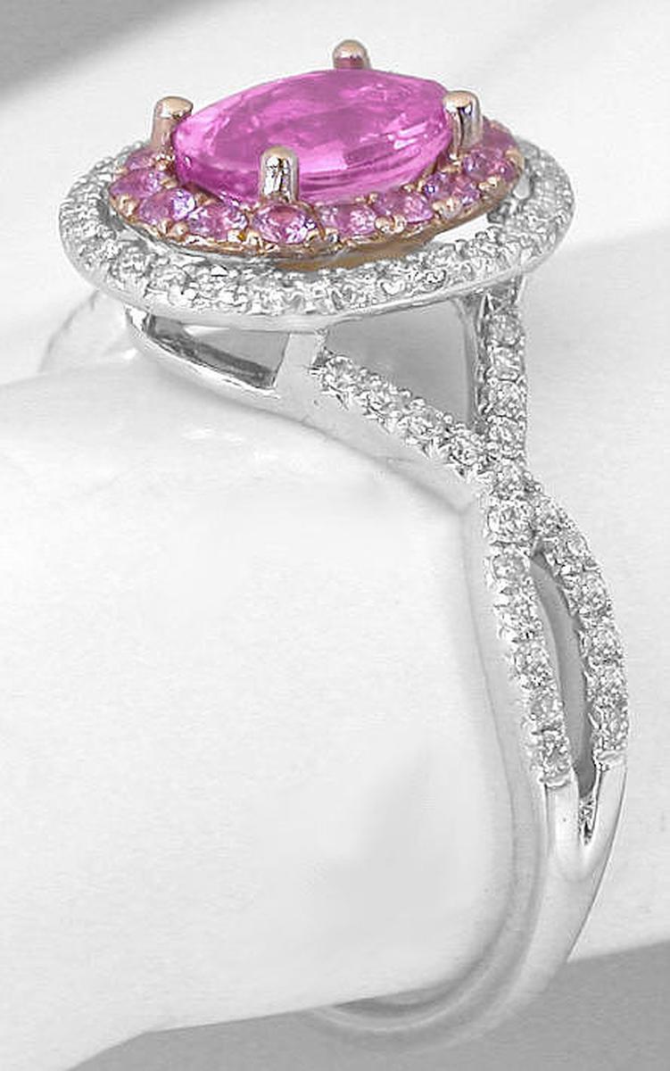 Oval Pink Sapphire Diamond Rings in 14k White and Rose Gold