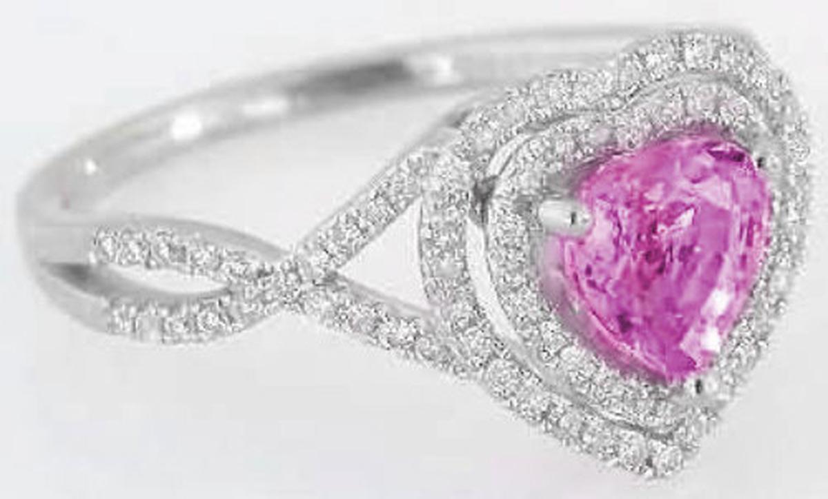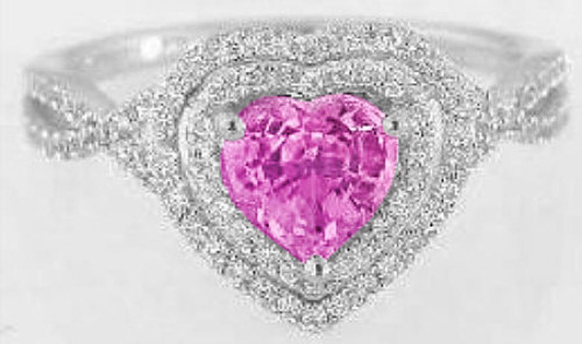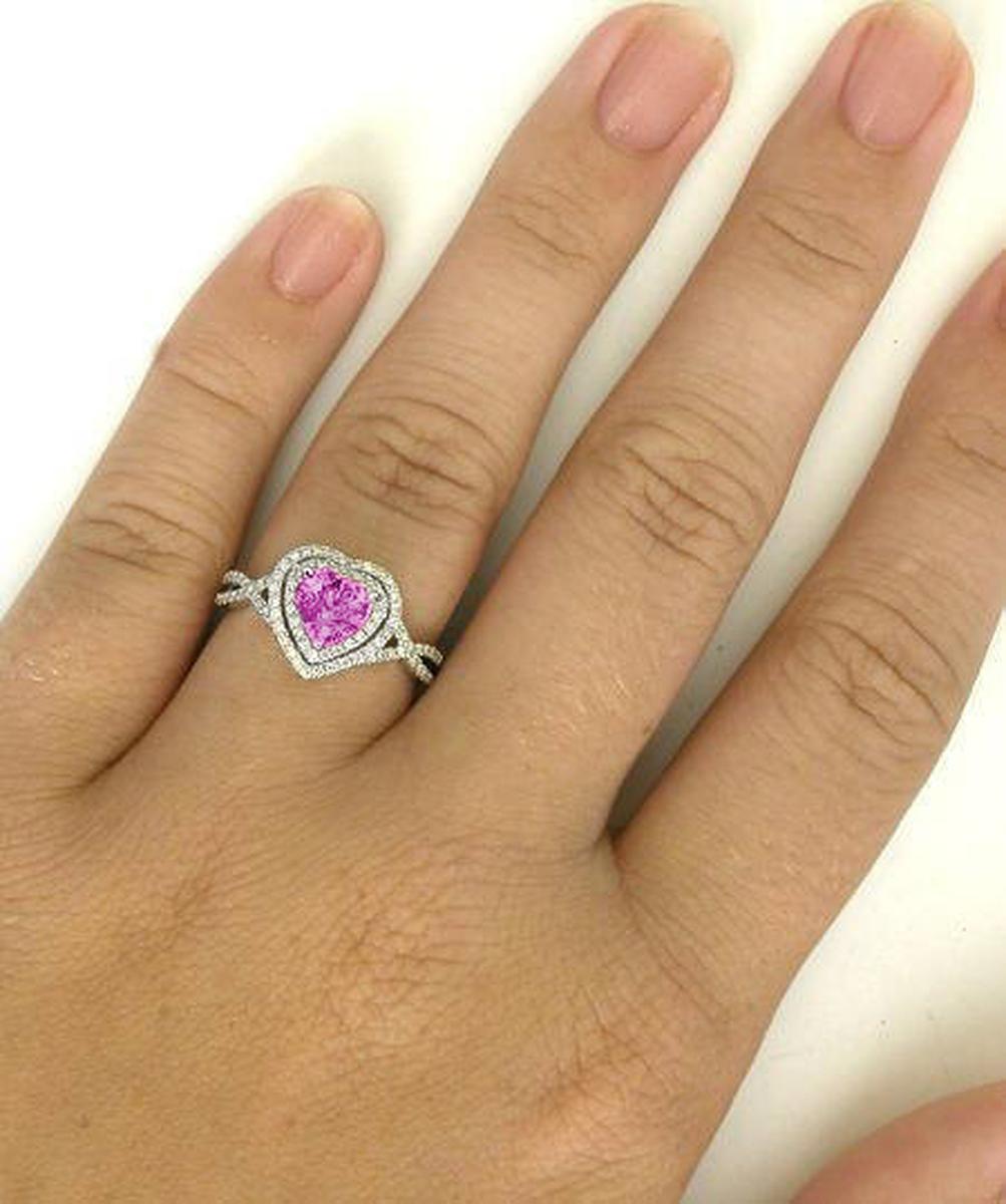 Heart Shape Pink Sapphire and Diamond Ring in 14k white gold  Heart Shape Pink Sapphire and Diamond Halo Ring in 14k white gold