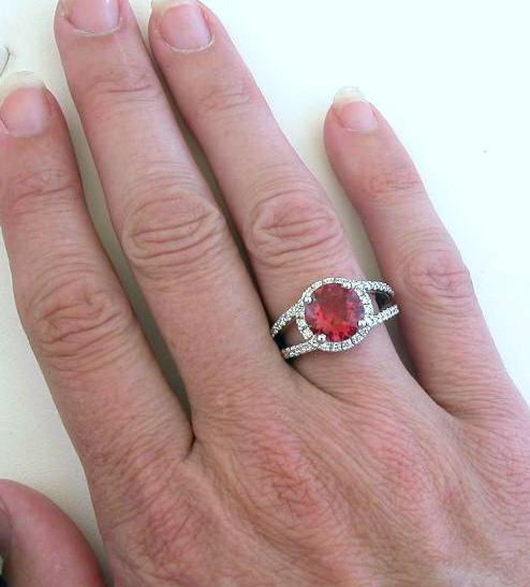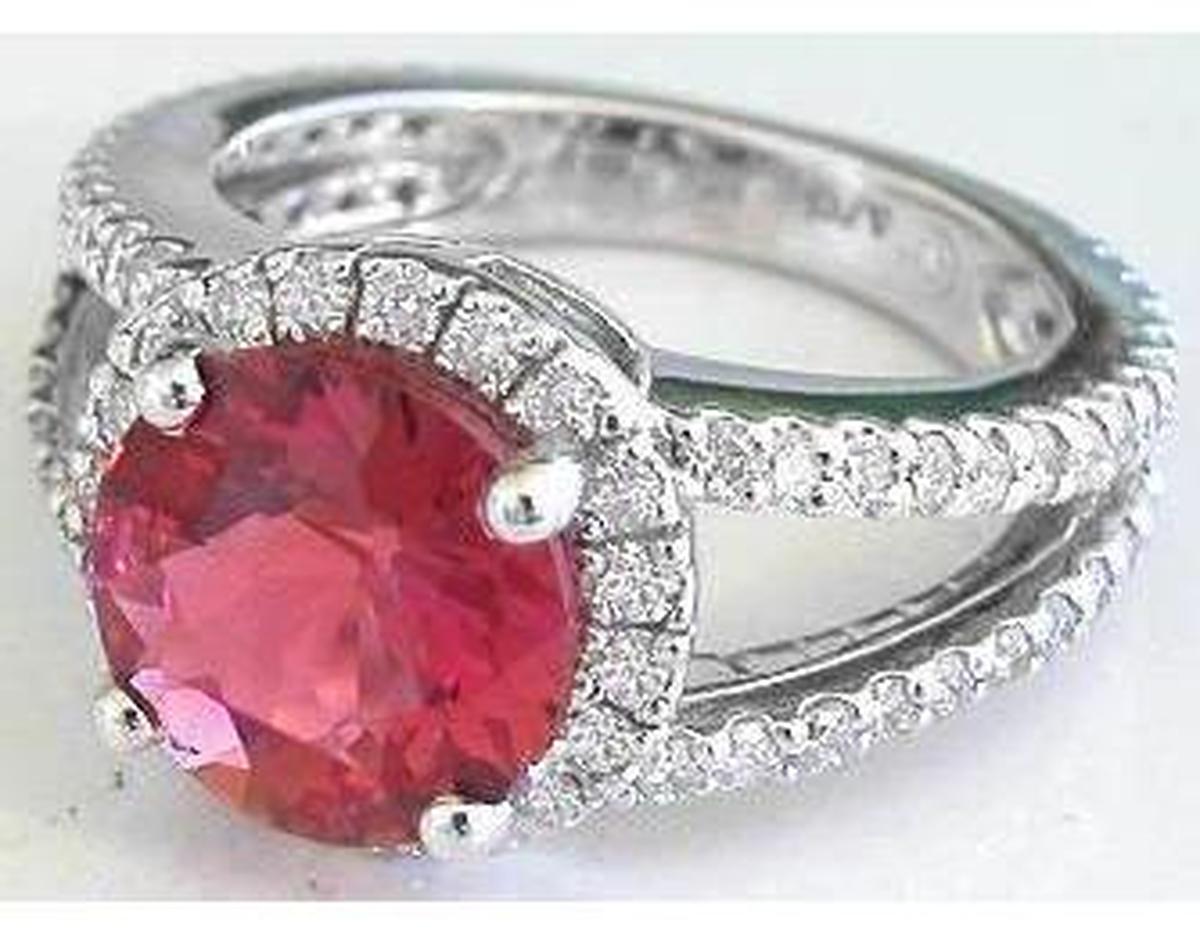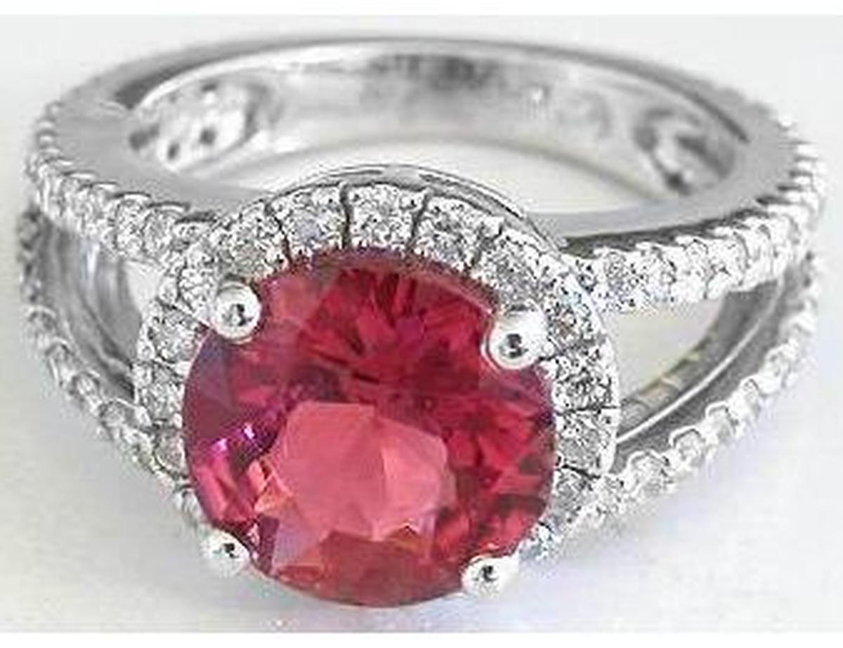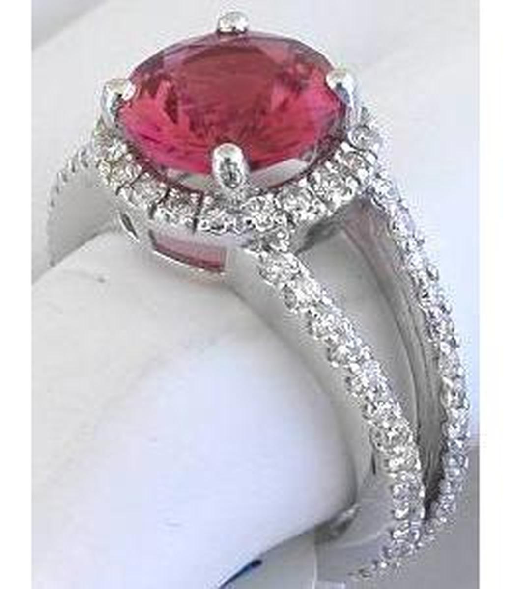 This is simply one of our finest pink tourmaline rings! We had a larger oval luscious cranberry red tourmaline that we had custom