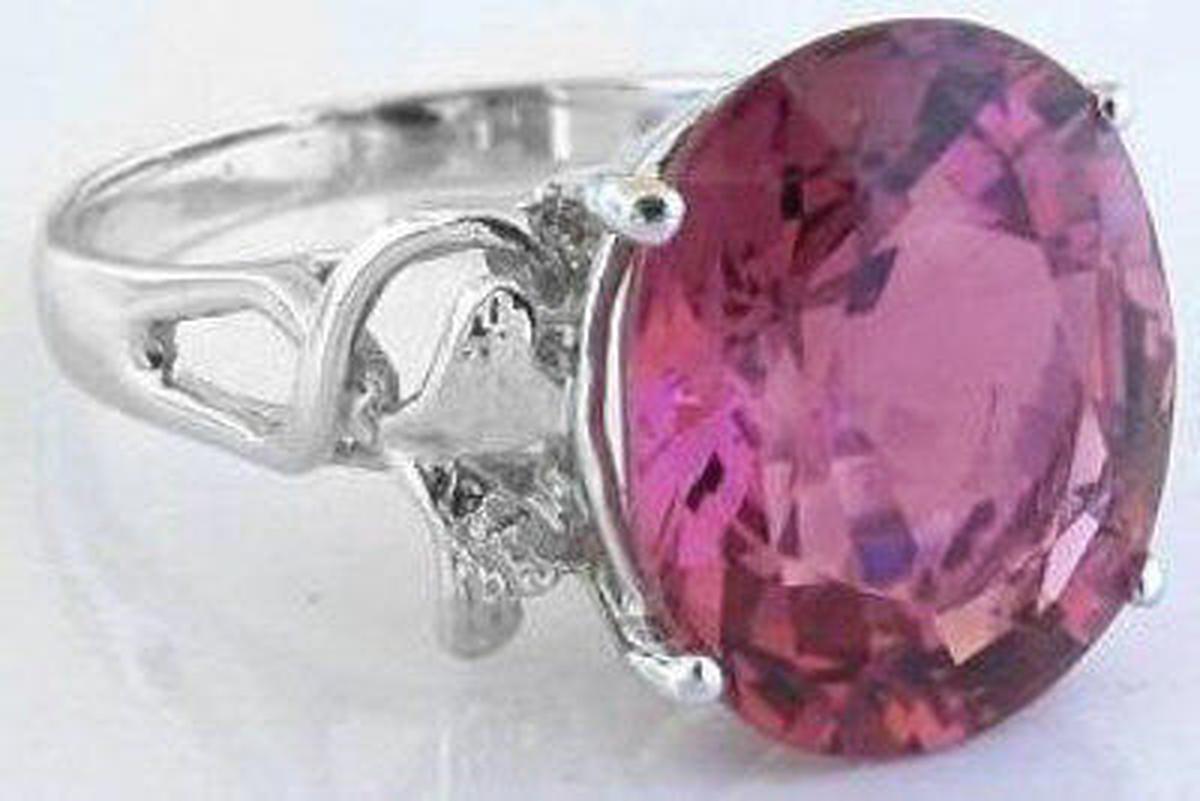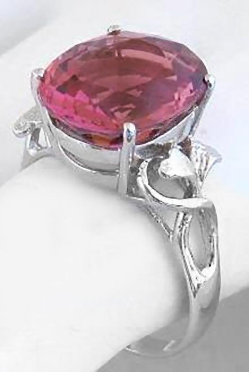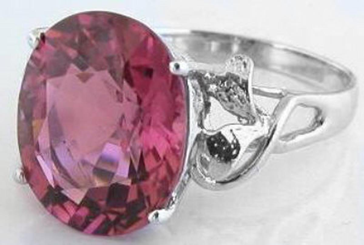Large Oval Pink Tourmaline Rings in 14k White Gold   Oval Pink Tourmaline Rings in 14k
