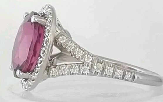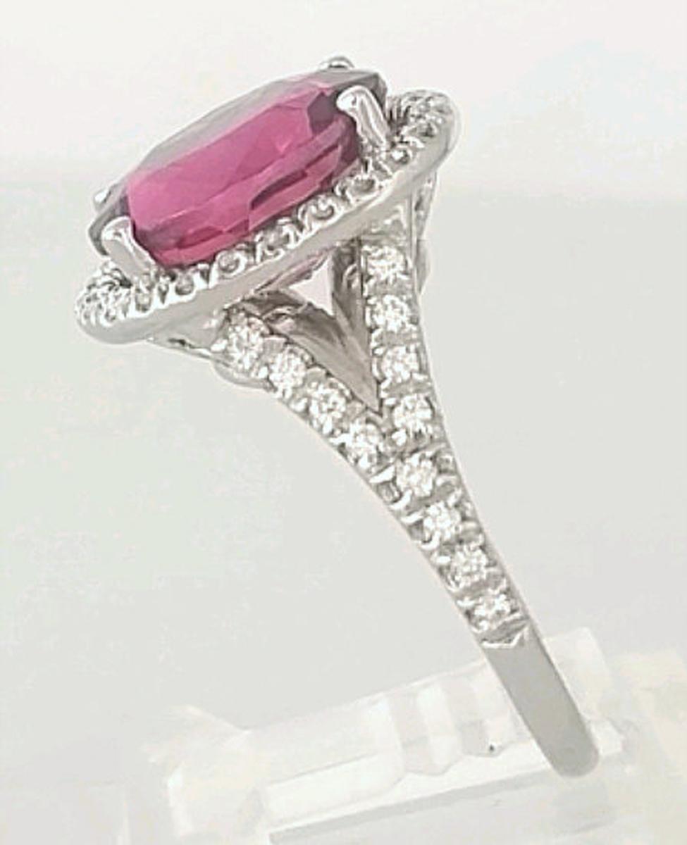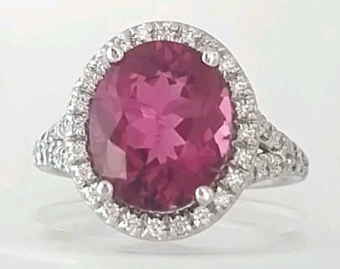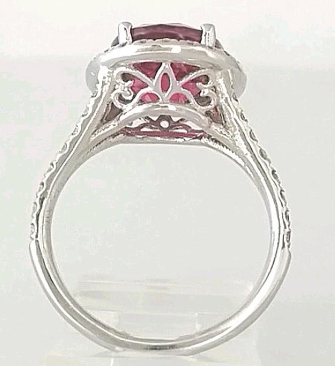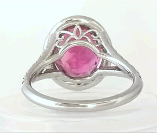This spectacular pink tourmaline ring features a 4.27 carat,