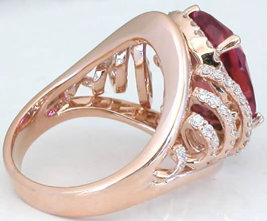 8.80 ctw Pink Tourmaline and Diamond Ring in 14k rose gold   Large Pink Tourmaline and Diamond Ring in 14k rose gold