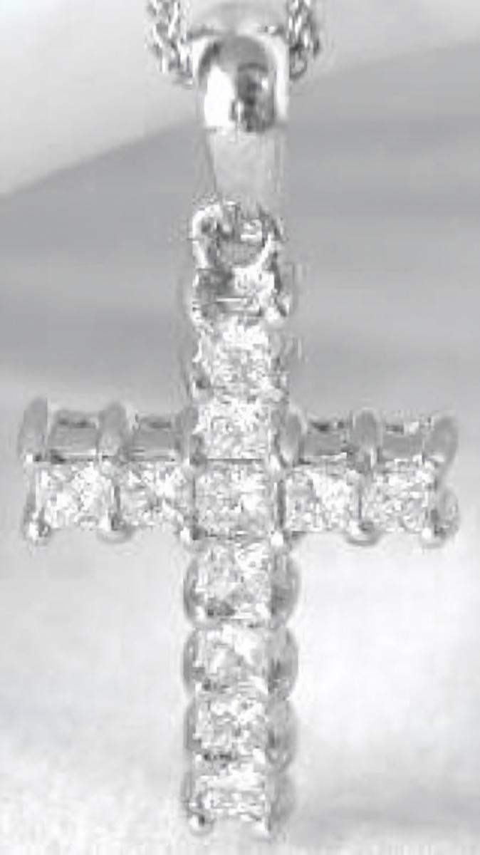 Special Features:This classic styled cross is made in the world's most precious metal, platinum, and gorgeous princess cut diamonds. They are set in a shared prong setting so the full presence and sparkle of the diamonds is immediately noticeable. These diamonds are white and have a lot of sparkle. The higher the diamond clarity, the more sparkle that emanates from the stones. The elegant cross is perfect for every day. It is not ostentatious yet has a wonderful presence on the neck.