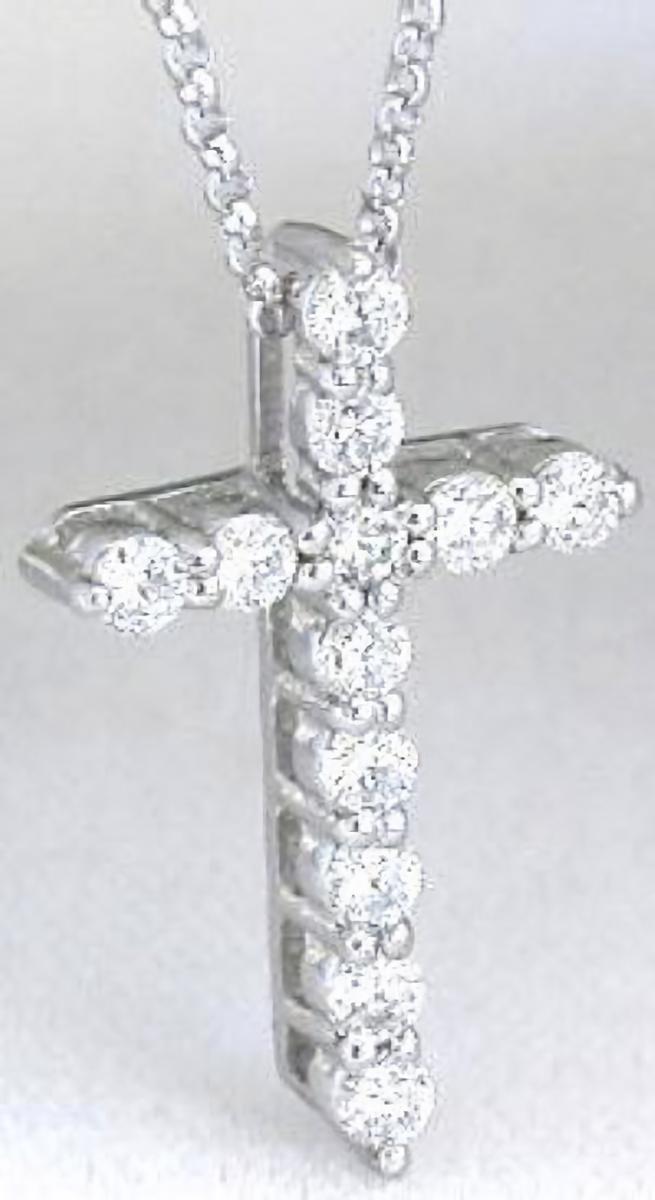 Special Features:This classic round diamond platinum cross is for those whose style says 'understated elegance'. It is the perfect choice for every day wear. The cross is just the right size and will complement any outfit beautifully. The diamonds are bright and white and there are absolutely no visible inclusions in the diamonds. This allows the light to dance off the stones leaving behind fire and brilliance.