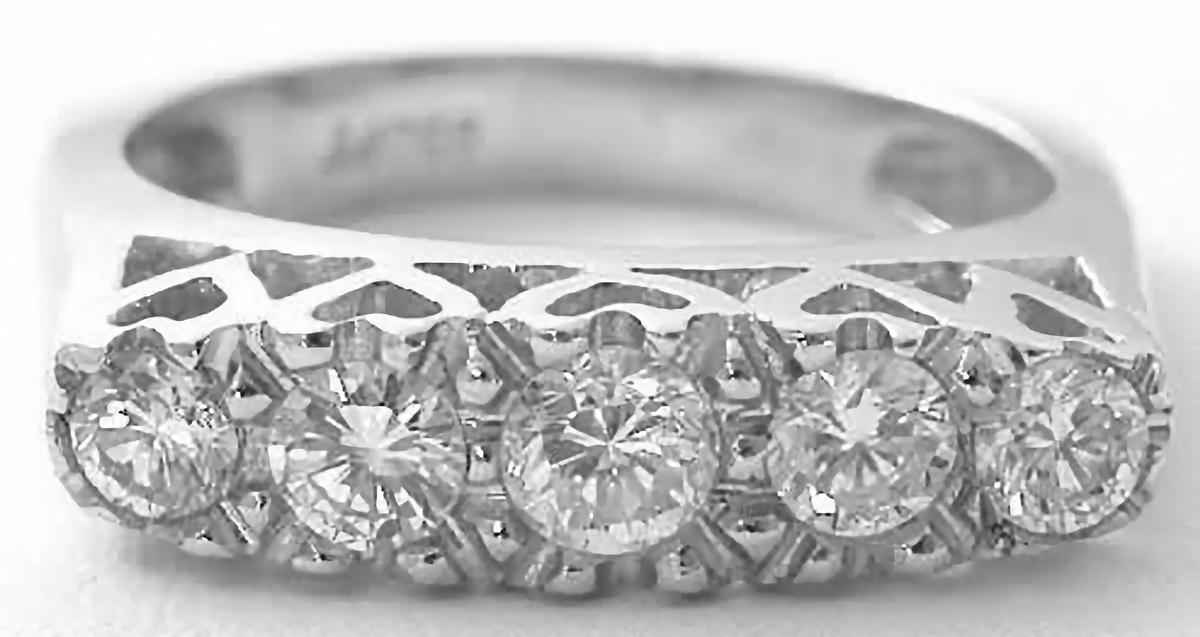 Solid Platinum Real Diamond Anniversary Band Ring. 5 Stone Ring with Heart Gallery.    0.80 carat Diamond Ring in Platinum with Heart Gallery