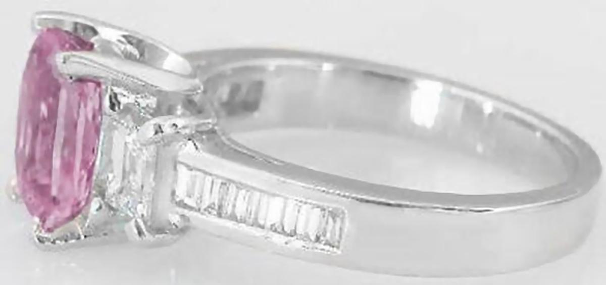 2.82 ctw Pink Sapphire and Baguette Diamond Ring in Platinum