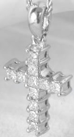 Special Features:This classic styled cross is made in the world's most precious metal, platinum, and gorgeous princess cut diamonds. They are set in a shared prong setting so the full presence and sparkle of the diamonds is immediately noticeable. These diamonds are white and have a lot of sparkle. The higher the diamond clarity, the more sparkle that emanates from the stones. The elegant cross is perfect for every day. It is not ostentatious yet has a wonderful presence on the neck.