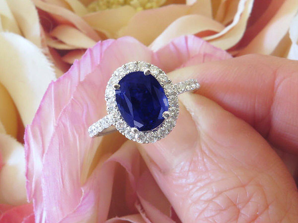 Exceptional Oval Ceylon Sapphire Diamond Engagement Ring