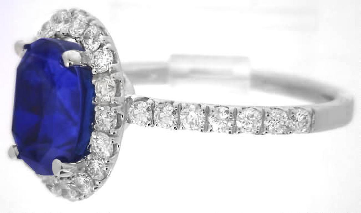 Intense Ceylon Blue Sapphire and Diamond Ring in 14k white gold