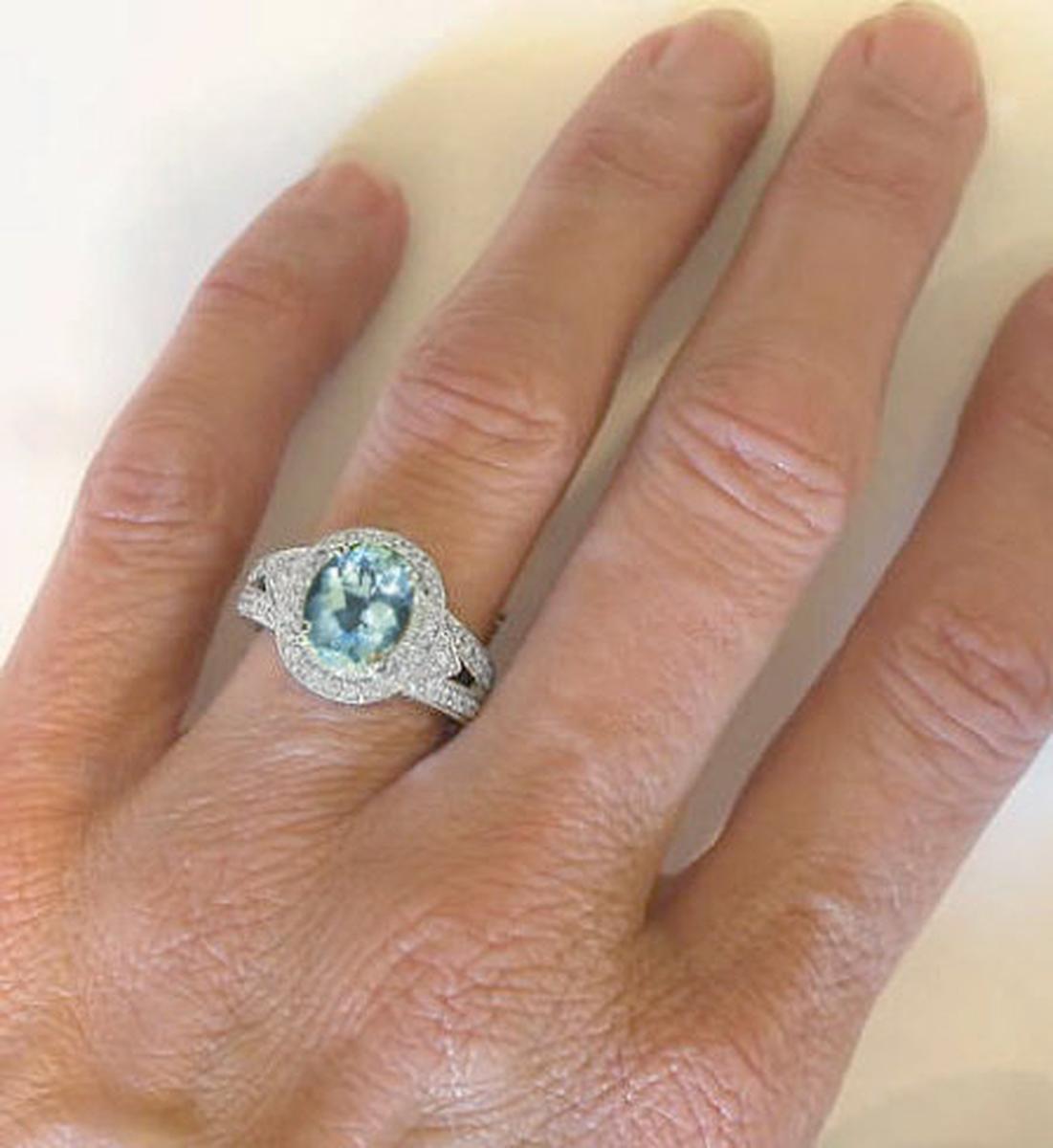 2.86 ctw Oval Cut Aquamarine and Diamond Ring in 14k white gold