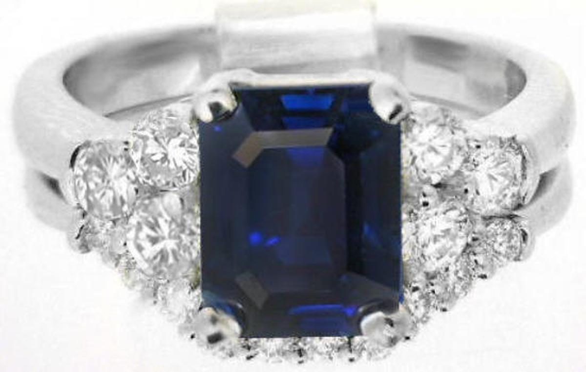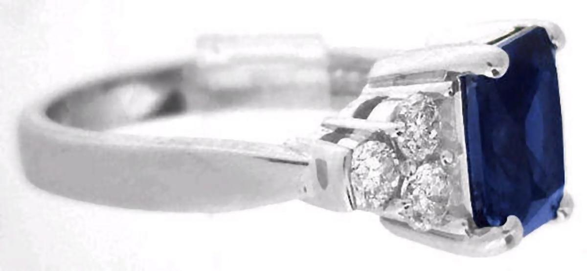 substantial 2.45 carat blue sapphire with a gorgeous emerald cut and a velvety