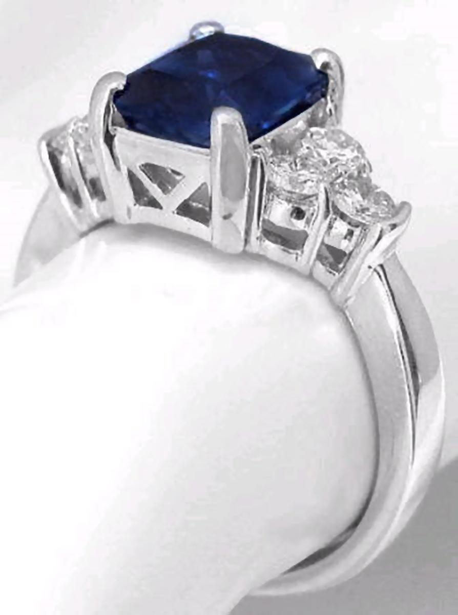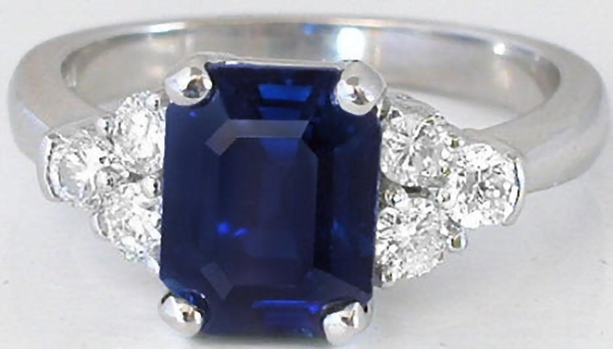 substantial 2.45 carat blue sapphire with a gorgeous emerald cut and a velvety