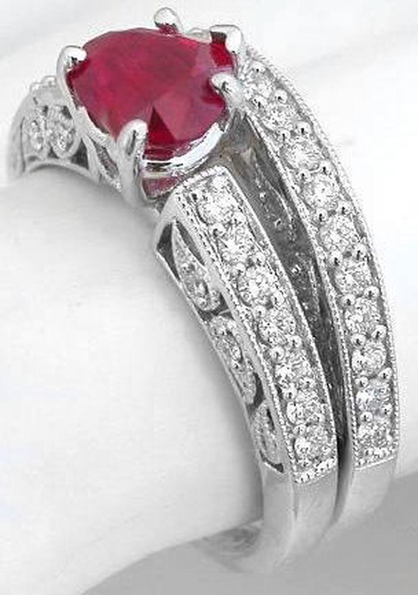 0.92 ctw Burmese Ruby and Diamond Engagement Ring in 14k white gold   Fine Burmese Ruby and Diamond Engagement Ring in 14k white gold