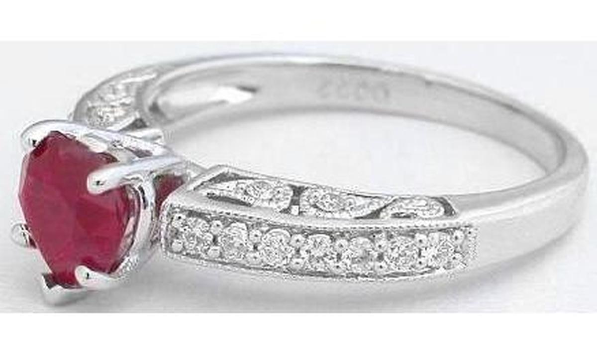 0.92 ctw Heart Shape Ruby and Diamond Engagement Ring in 14k white gold