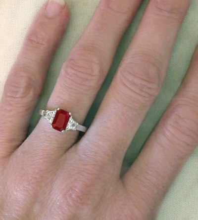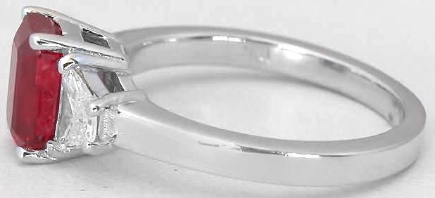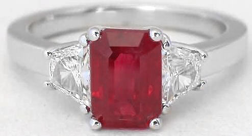 Special Features: If you are looking for a truly exceptional, absolutely exquisite ruby ring, you have just found it! The emerald cut ruby in this ring is very clear and transparent and has a gorgeous rich red color without the secondary pink or purple hues. The carat weight and the origin of the ruby are very important. Fine rubies at 2 carats and above are very rare and couple that with the ruby being of Burmese origin, this particular stone is extremely valuable and extremely difficult to find right now. This ruby is so special that we wanted to combine it with equally special diamonds. Trapezoid cut diamonds too are rare and not seen very often. The shape of the trapezoid so beautifully complements the cutting of the ruby that we just knew in combination, the ring would be breathtaking. The diamonds of very fine quality being near colorless and much better than eye clean!  The elegant 18k white gold setting was custom made to fit these special stones and the result is absolute perfection! Rubies, along with sapphires, are the hardest colored gemstone, making this an ideal choice for an engagement ring. Ruby is also the gemstone for the fifteenth and fortieth wedding anniversary.