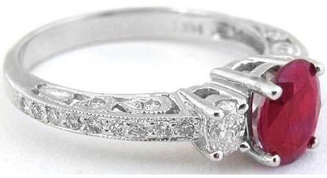 1.59 ctw Burmese Ruby and Oval Diamond Ring in 14k white gold   Burmese Ruby and Oval Diamond Ring in 14k white gold
