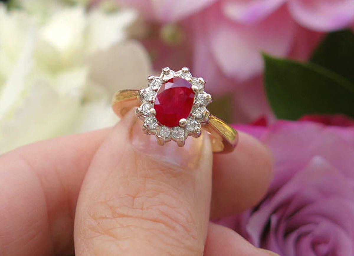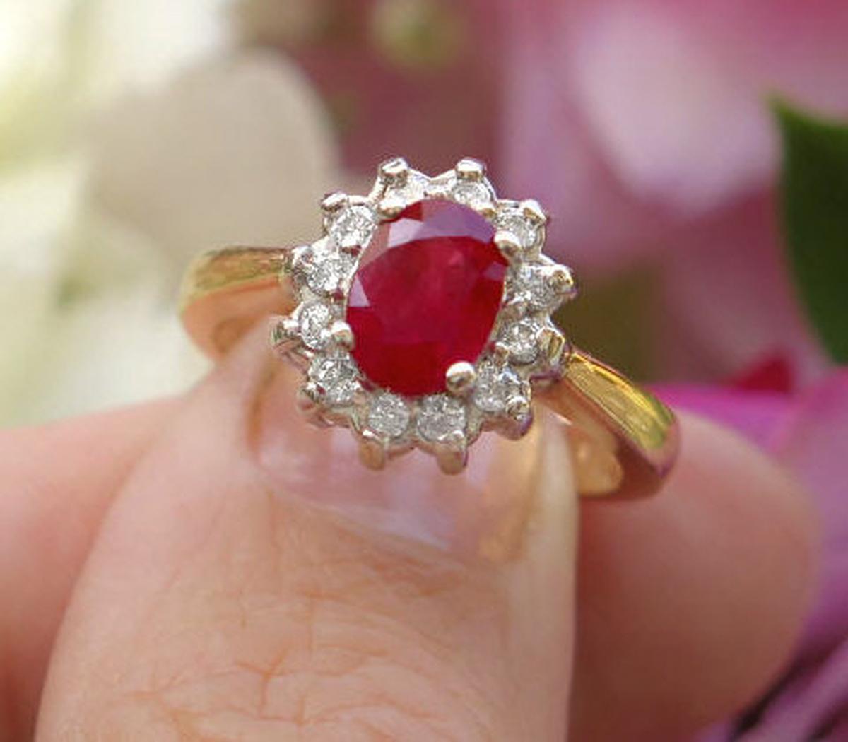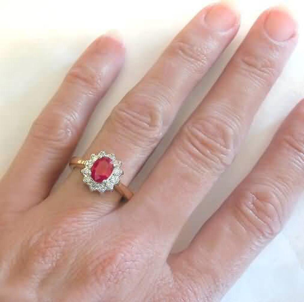 in no way detract from the beauty of the gem. The size is perfect for a range of finger sizes. The beautiful diamonds that surround the ruby make the color