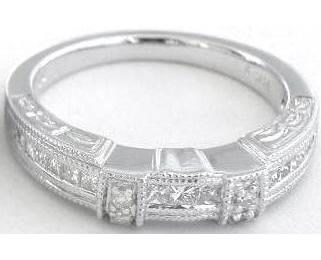 feel of the ring is evident in the milgrain edging and elegant carved detail on the sides of the band. The