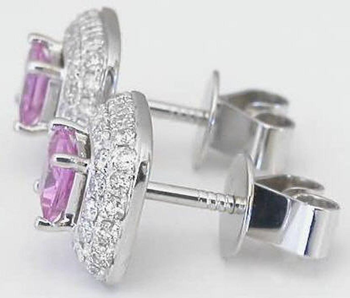 1.46 ctw Princess Cut Pink Sapphire and Pave Diamond Earrings in 14k white gold