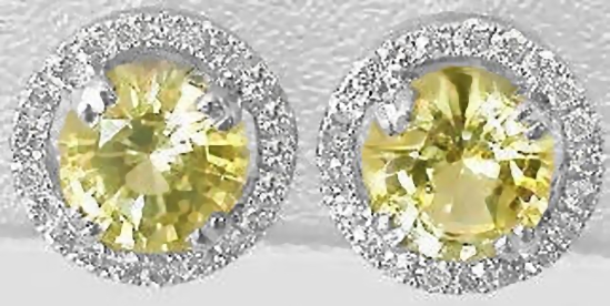 Special Features: The sapphires we used in these earrings are 5.8mm in size and have a beautiful light and bright lemon-banana yellow color. They have a wonderful cut and because of that, they are shiny and sparkly too. The frame of diamonds adds a perfect does of additional sparkle and brings the overall earring size to 9mm.  These could easily be that piece you choose when you're unsure of what earring to wear. The earring mountings have a pierced openwork design so these look very nice from every angle.  These earrings have a post with screwback for added security.