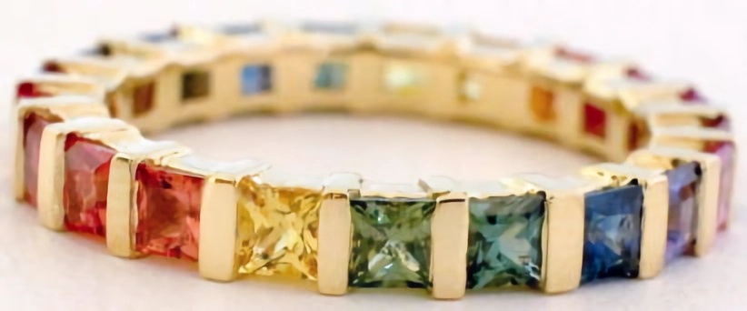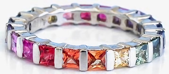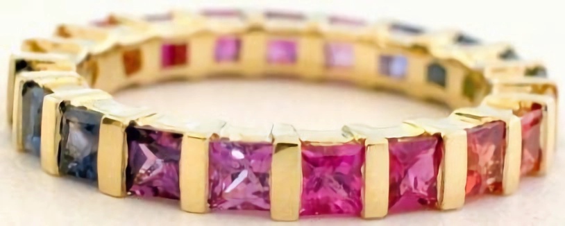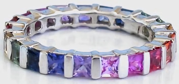 beautiful eternity band ring. With over 20 stones per ring, the colors