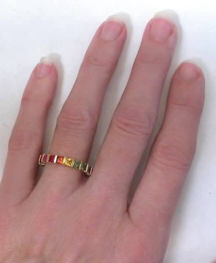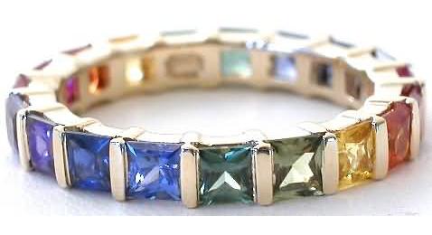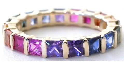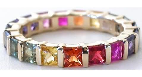 Princess Cut Rainbow Sapphire Eternity Ring