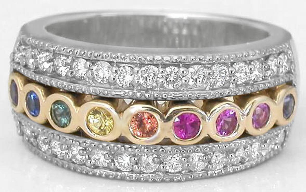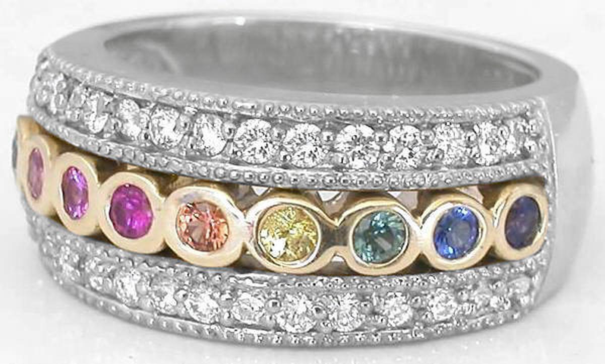 Rainbow Sapphire Diamond Ring