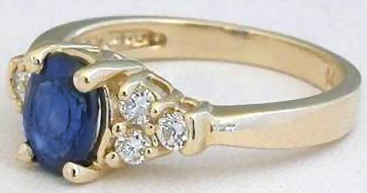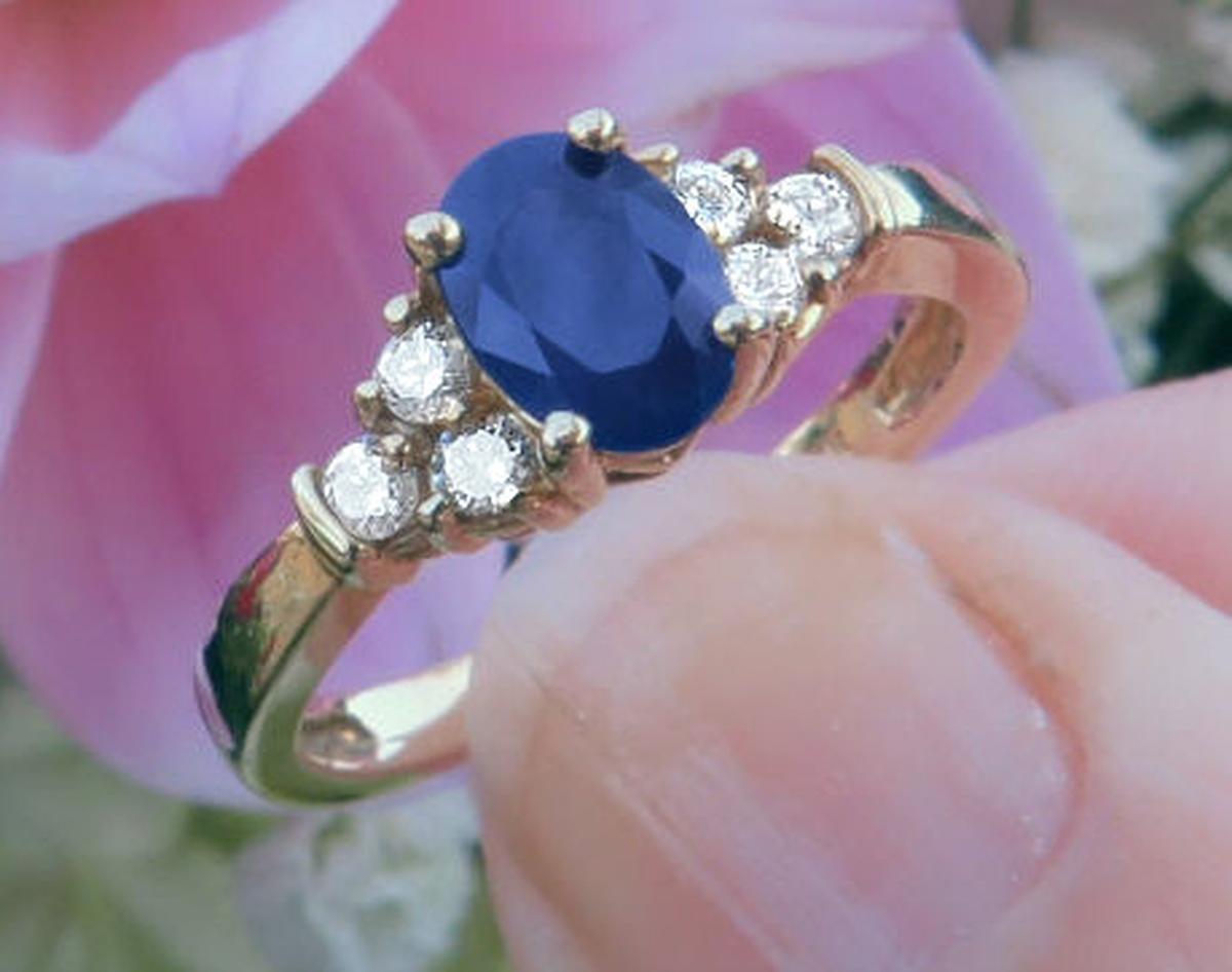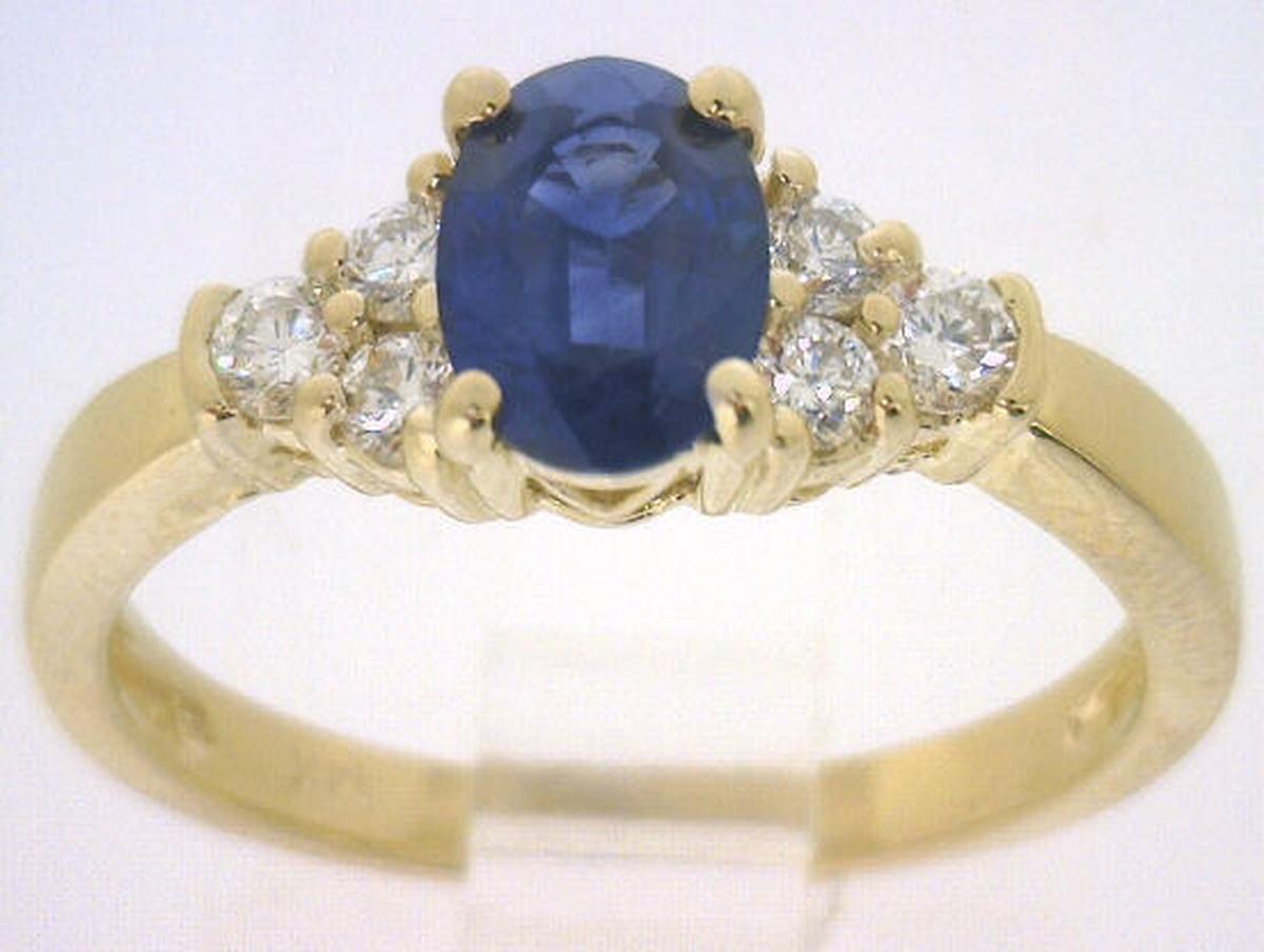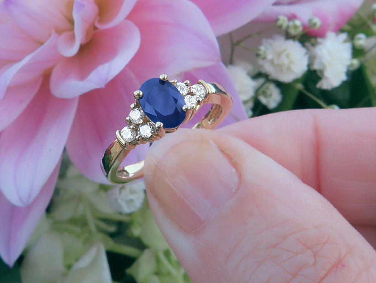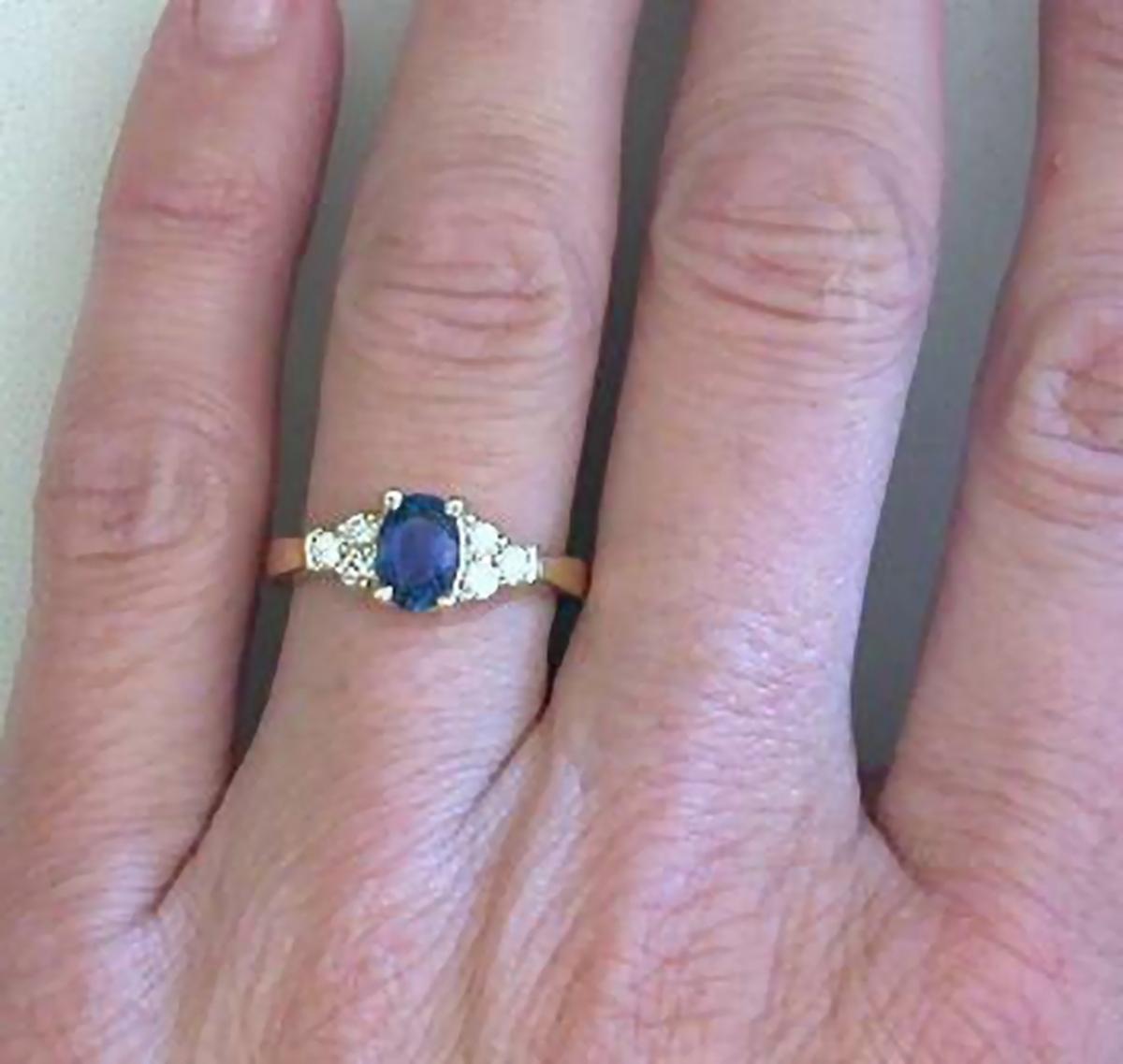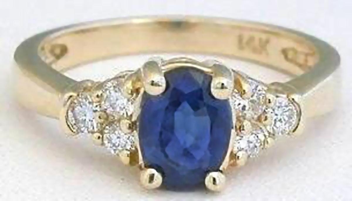 Here is a beautiful bright sapphire and diamond ring in a timeless