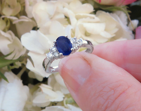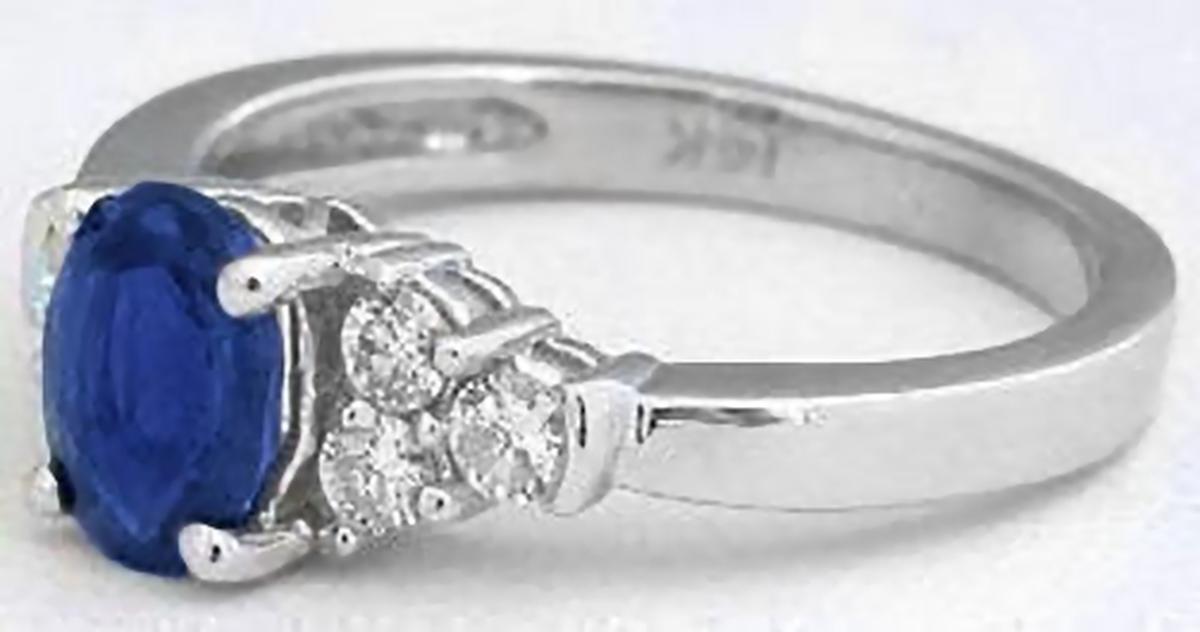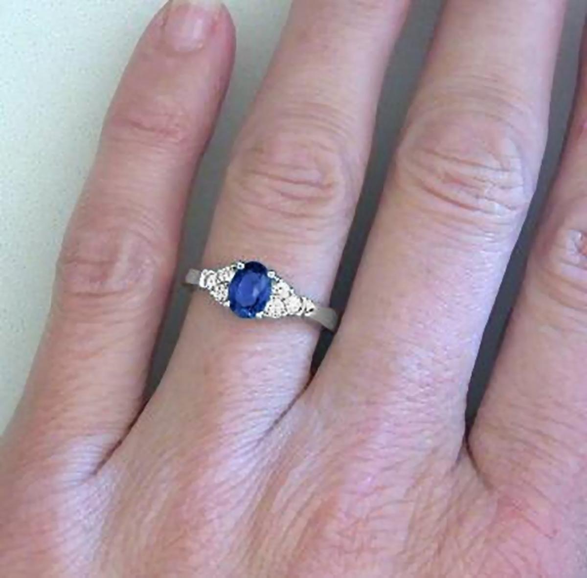 Gemstone: Natural Blue Sapphire  Natural Oval Cut Blue Sapphire Ring with Real Diamonds in 14k white gold for sale