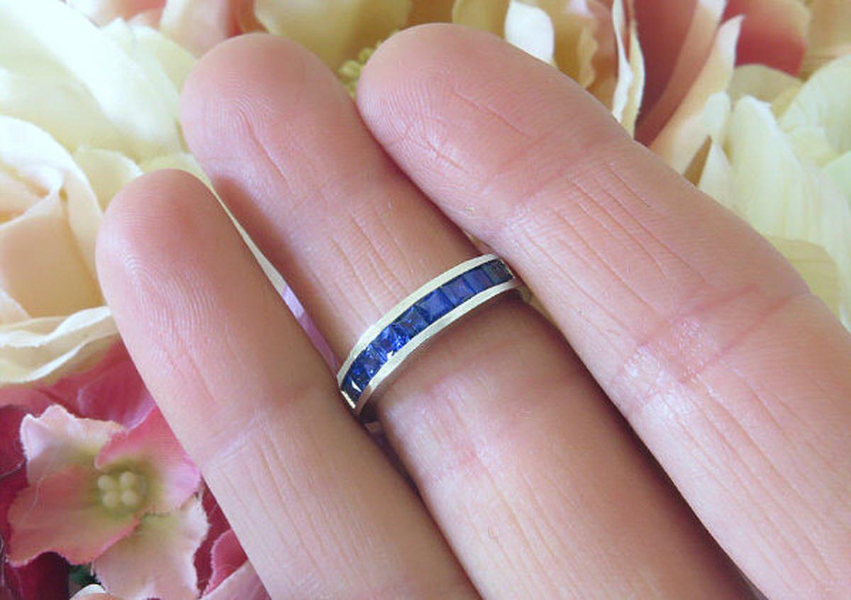 Gemstone: Natural Sapphire Princess Cut Blue Sapphire Band Rings in 14k white gold