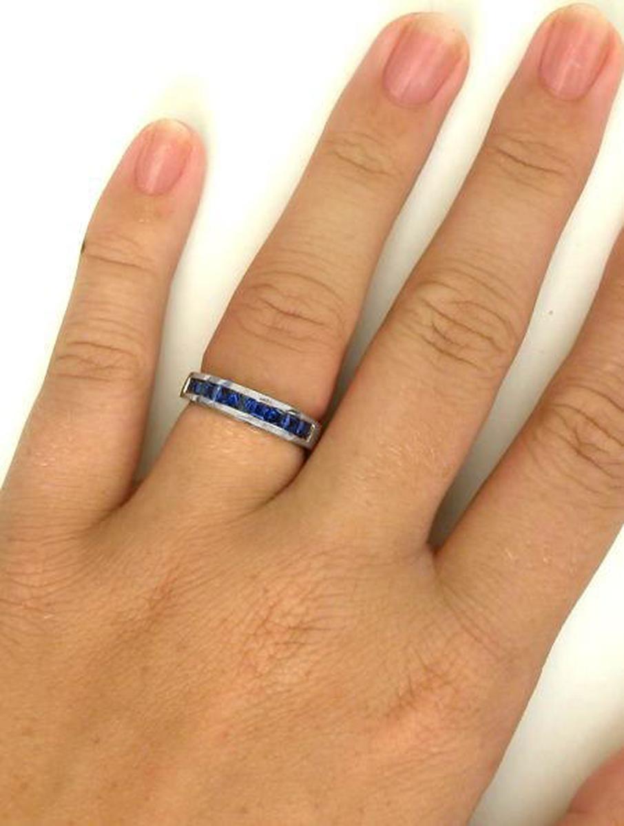 Channel Set Princess Cut Natural Blue Sapphire Band Ring  in solid 14k white gold   Channel Set Princess Cut Natural Blue Sapphire Band Ring  in solid 14k white gold for sale