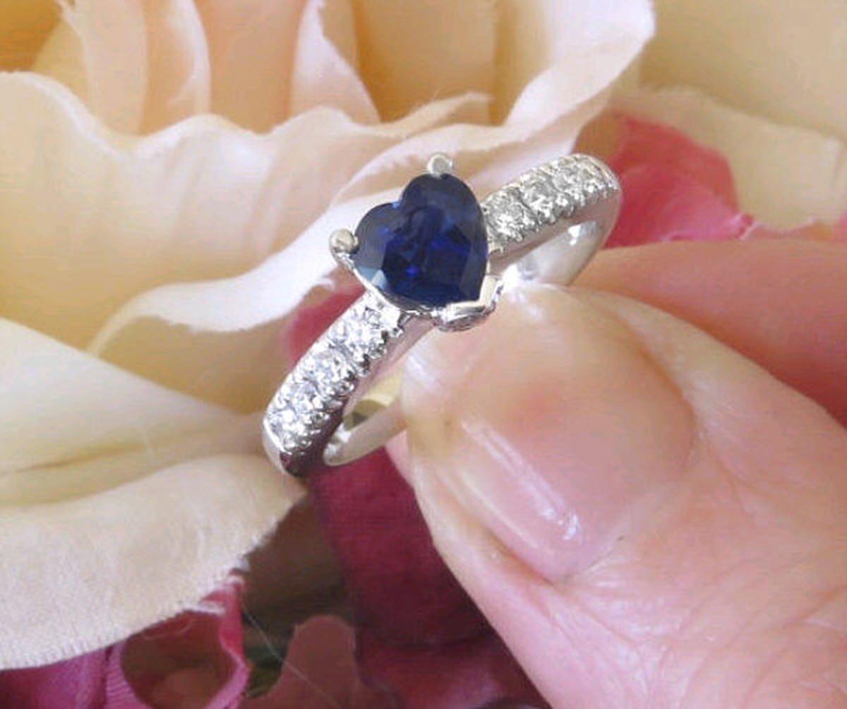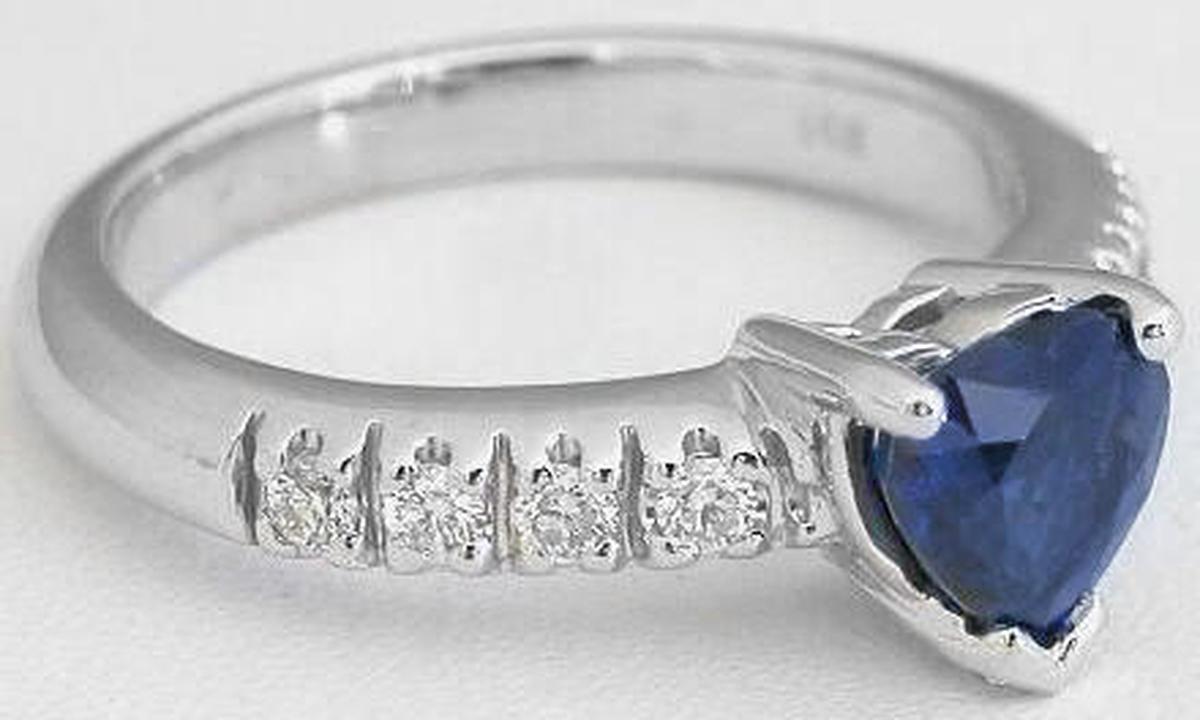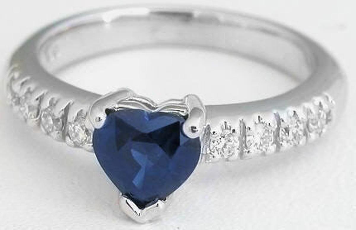 Heart Cut Real Blue Sapphire Wedding Ring with Genuine Diamonds in solid 14k white gold for sale   Heart Cut Natural Royal Cornflower Blue Sapphire Ring with Genuine Diamonds in a 14k white gold mounting for sale