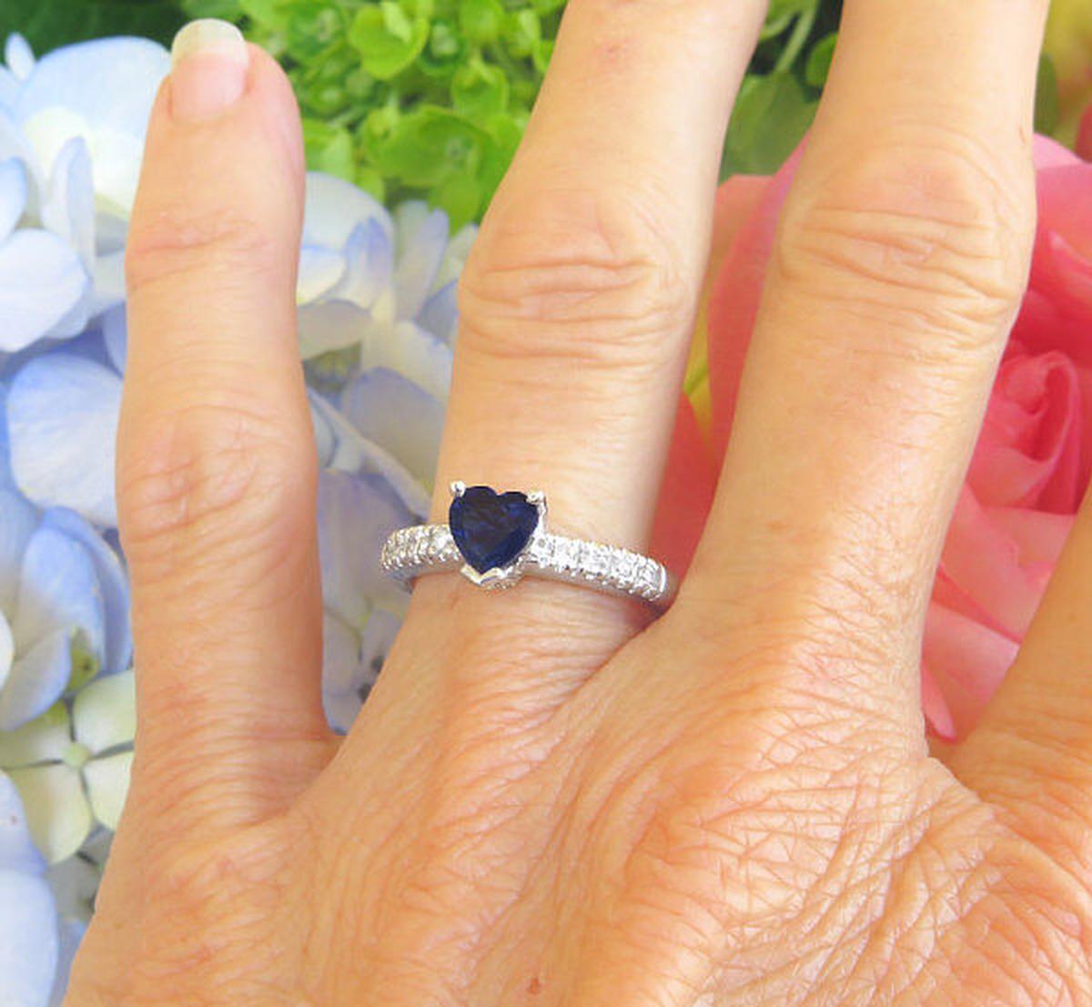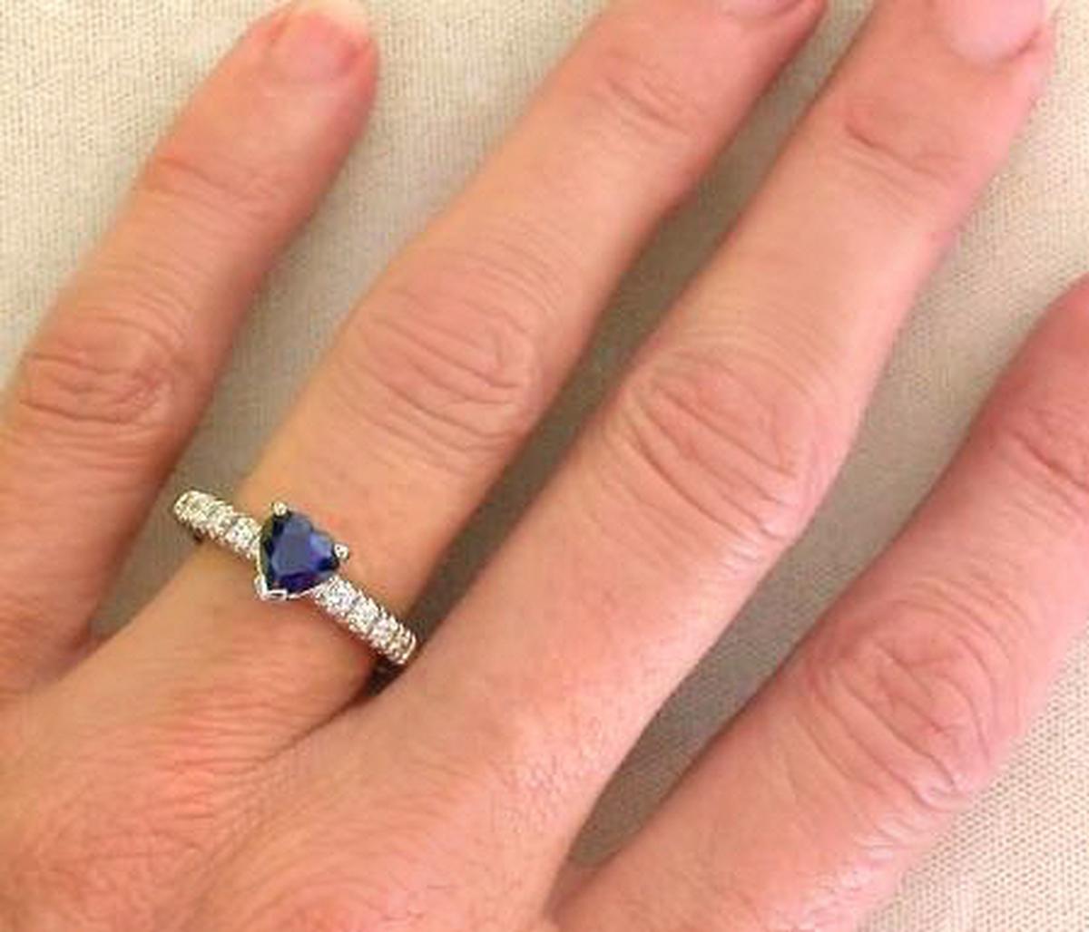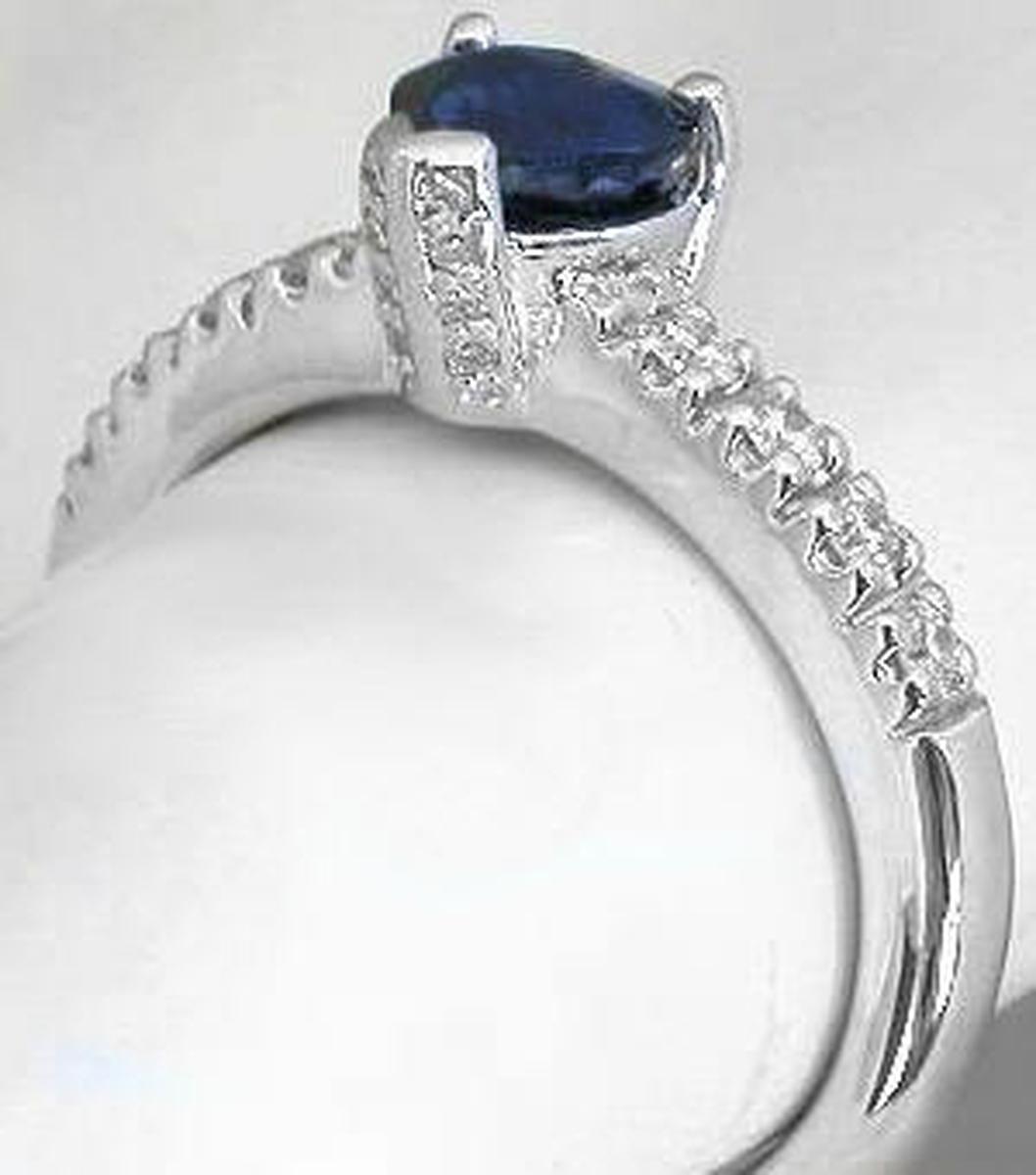 Heart Cut Real Blue Sapphire Wedding Ring with Genuine Diamonds in solid 14k white gold for sale   Heart Cut Natural Royal Cornflower Blue Sapphire Ring with Genuine Diamonds in a 14k white gold mounting for sale