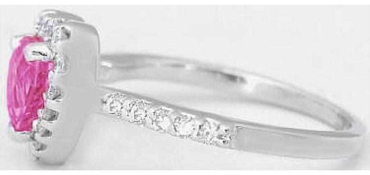 diamond halo that surrounds it. The sapphire