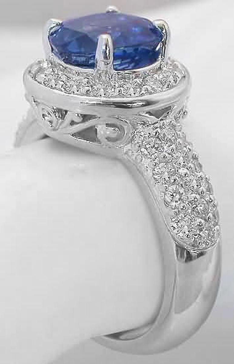 breath away when you open the box. The Ceylon sapphire at the center is nearly 3 carats in size and it has a